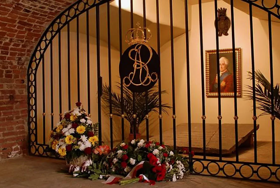 В подземельях храма были погребены короли Польши Станислав Август Понятовский и Станислав Лещинский. До сих пор в крипте храма покоится французский генерал Жан Виктор Моро, главнокомандующим союзными армиями в войне с Наполеоном.